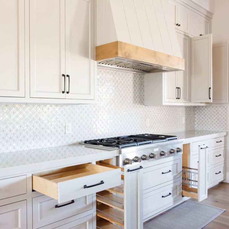 This feature adds function without sacrificing counter space. Appliances stay plugged in and ready to use, but remain hidden when not needed. It keeps the backsplash clear and reduces clutter while still supporting daily routines. The result feels organized, efficient, and built around how the kitchen is used.