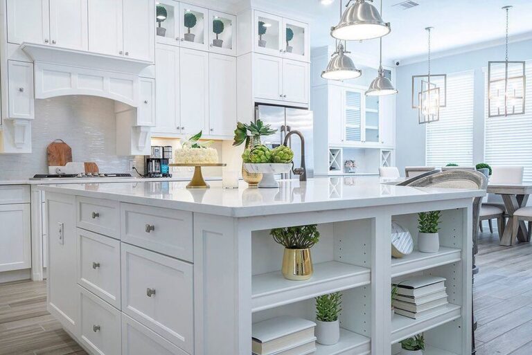 In 2026, white kitchens are no longer about keeping everything the same tone. The shift comes from how elements are arranged. Islands anchor the room, cabinet walls create continuity, and wood, metal, or stone break the surface just enough to add depth. Instead of relying on color, these kitchens use layout to make the space feel complete.