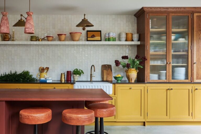 The ideas below reflect the kitchens designers are actually building right now, not the ones circulating endlessly online. From color-drenched cabinetry and heritage-inspired layouts to sculptural islands and unexpected material pairings, these kitchens show what bold really looks like when it’s meant to be lived in.