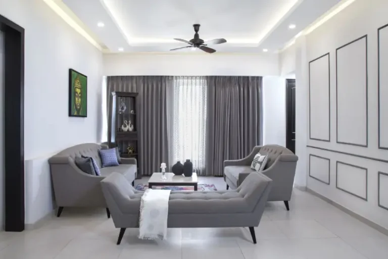 When employed the right way, black and white exude class, harmony and a stylish modern style. Let’s discuss how a contemporary 3BHK flat can be designed, highlighting the highlighting the black-and-white living room.