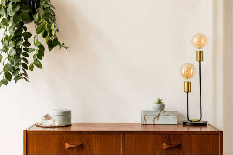 - Think clean and crisp. Clean and crisp lines are the name of the game in minimalism. White kitchen cabinets are popular in minimalist design because they look clean in a kitchen and keep the design lines crisp. Instead of soft, cushiony couches, consider more mid-century stiff lines. That isn’t to say you have to live uncomfortably; instead, focus on finding quality pieces that are comfortable but have a clean design line. The less cluttered your space feels, the better you’ll feel, too!