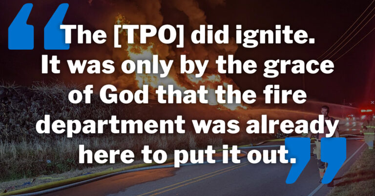 While the FiberTite section of the roof was resisting the fire’s attack, the TPO section was not; it had developed many holes that burned completely through the membrane. “It did ignite,” Brad said. “It was only by the grace of the God that the fire department was already here to put it out.”