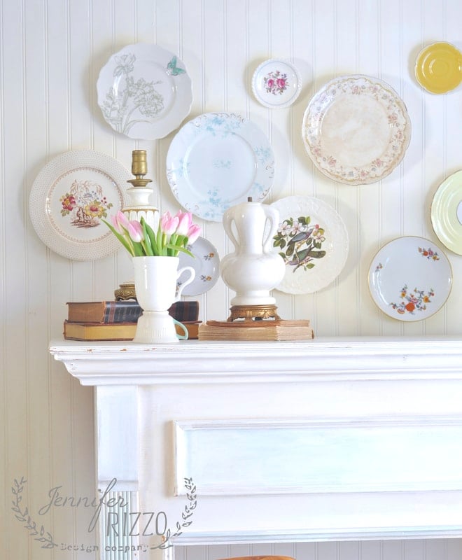 It’s ok to use new plates too! Mixing and matching new and old plates can add a collected feel. Vintage or new plates can also be added among art work to a collaged gallery wall to add interest such as Celebrating Everyday Life did in this post.