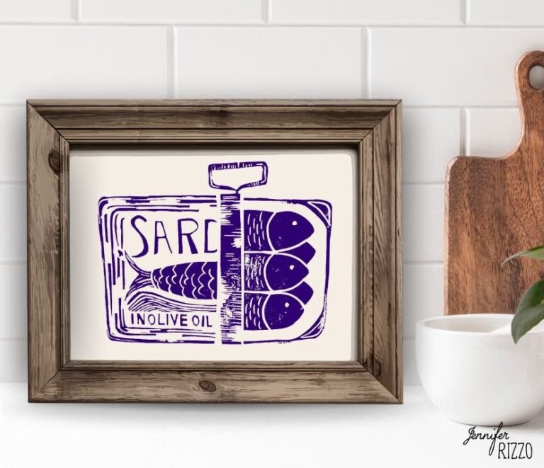 I really enjoyed Making Custom Decor With a Hand-Carved Stamp and I hope you love this free sardine printable! You can also see how I carved an owl stamp here for fall.