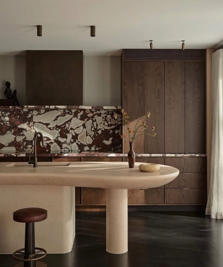 Walnut kitchen cabinets are not tied to one style, era, or layout. They appear in minimal apartments, classic homes, and sculptural modern spaces, often doing the same job every time: grounding the kitchen without making it feel heavy. The color brings depth without darkness and warmth without softness.